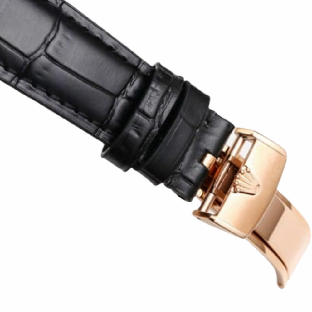 | Dial: | White painted dial, simple and elegant, paired with rose gold hands and hour markers |